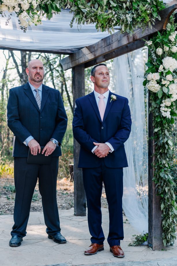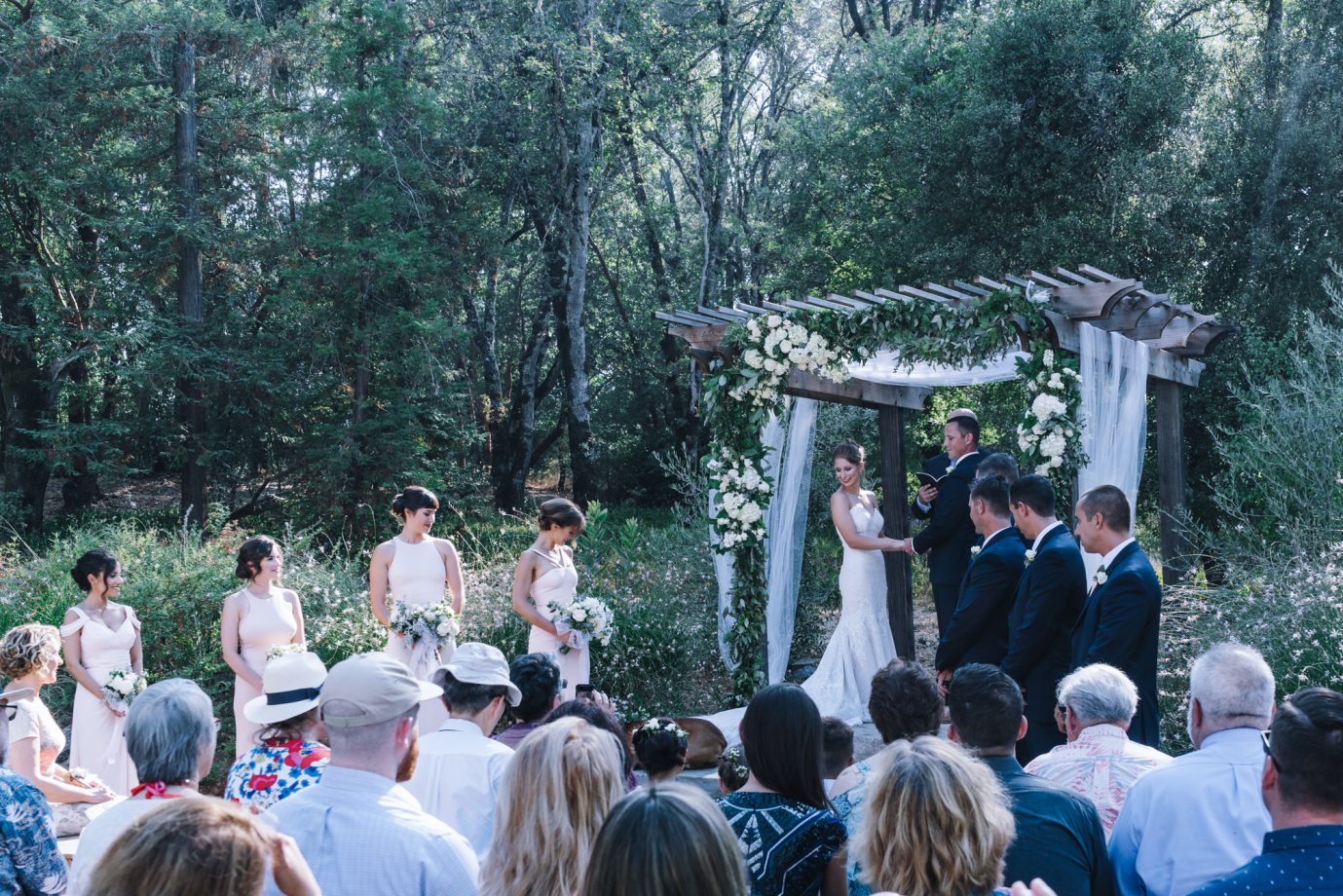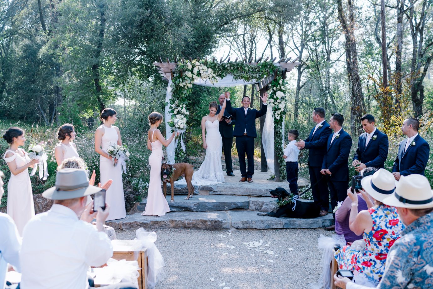 The Wedding took place at Yokayo Ranch, which is located in Ukiah, CA. I had never photographed there before and was immediately struck by it’s rustic beauty. The ceremony was short and sweet, with a wedding party consisting of the usual lineup of bridesmaids and groomsmen, but a couple of dogs were also part of the line up, which I thought was adorable.
