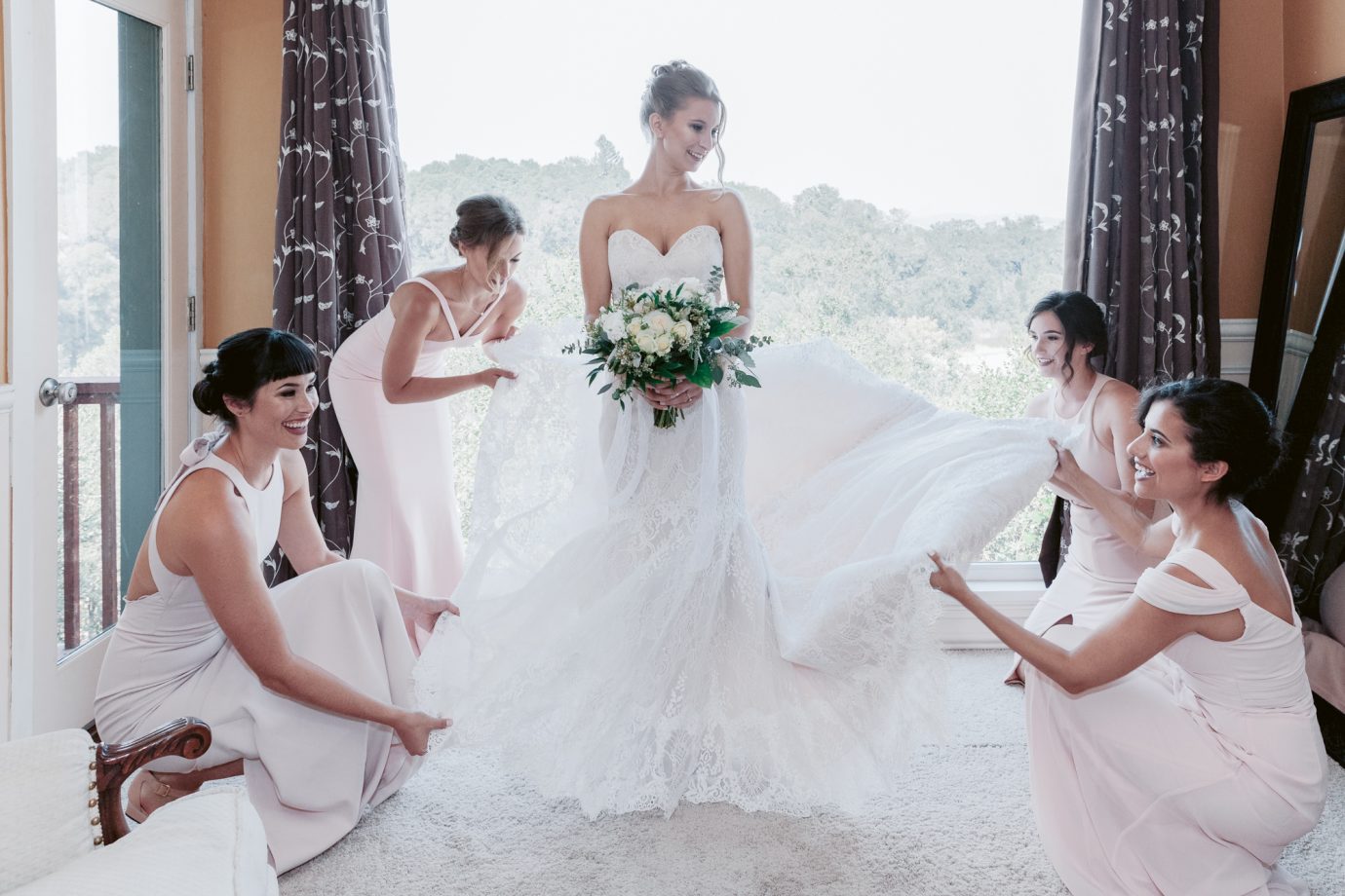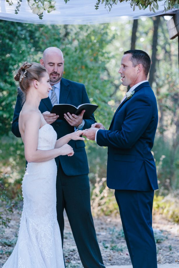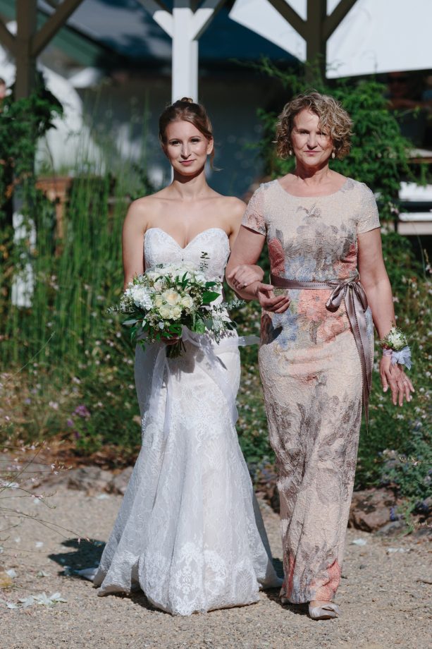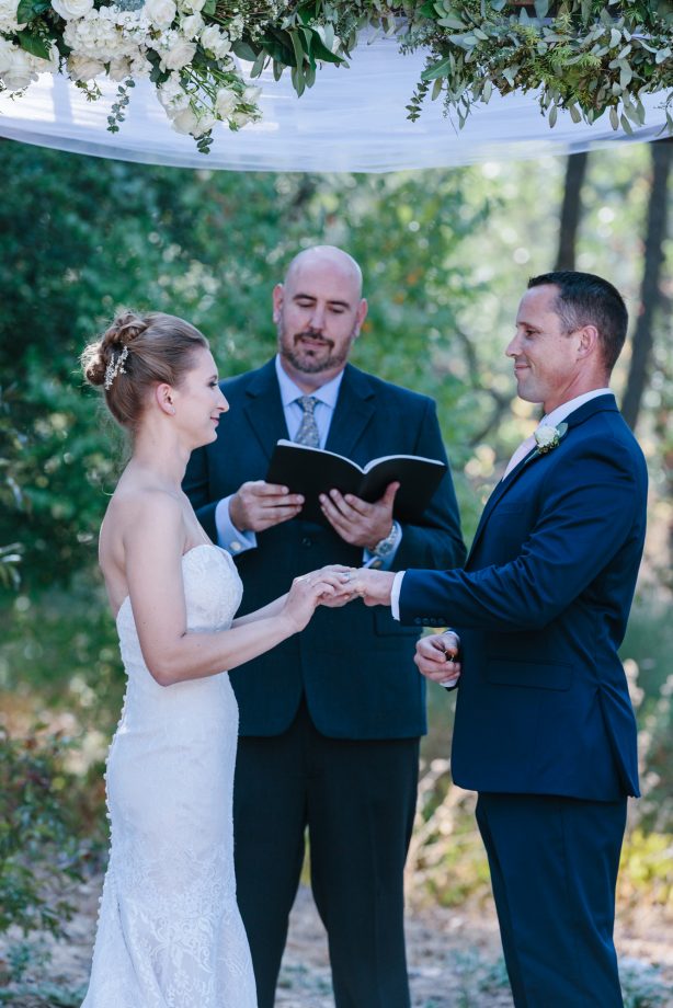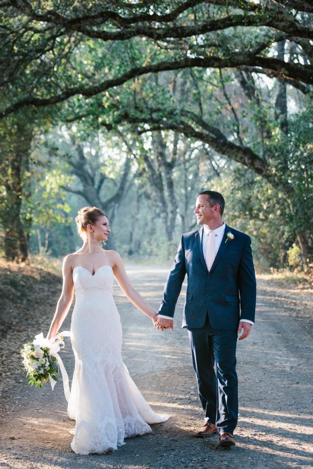 The Wedding took place at Yokayo Ranch, which is located in Ukiah, CA. I had never photographed there before and was immediately struck by it’s rustic beauty. The ceremony was short and sweet, with a wedding party consisting of the usual lineup of bridesmaids and groomsmen, but a couple of dogs were also part of the line up, which I thought was adorable.