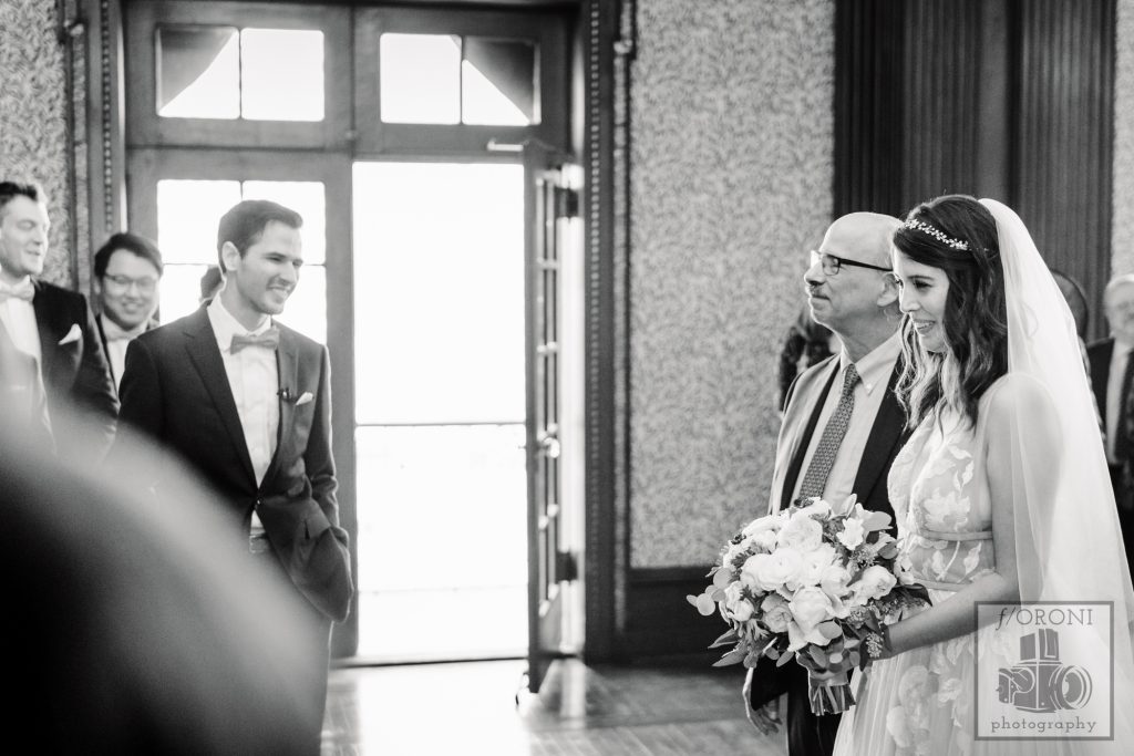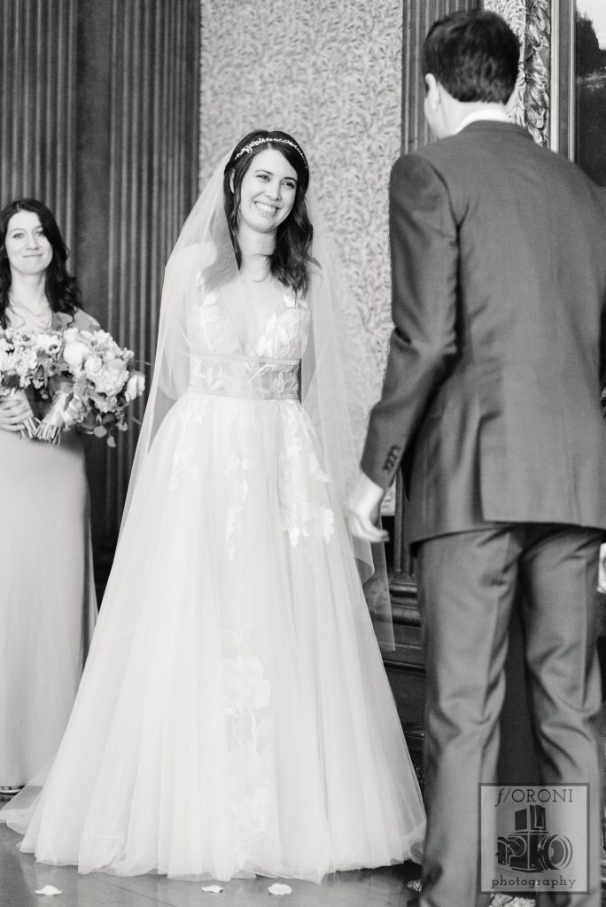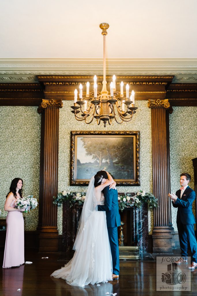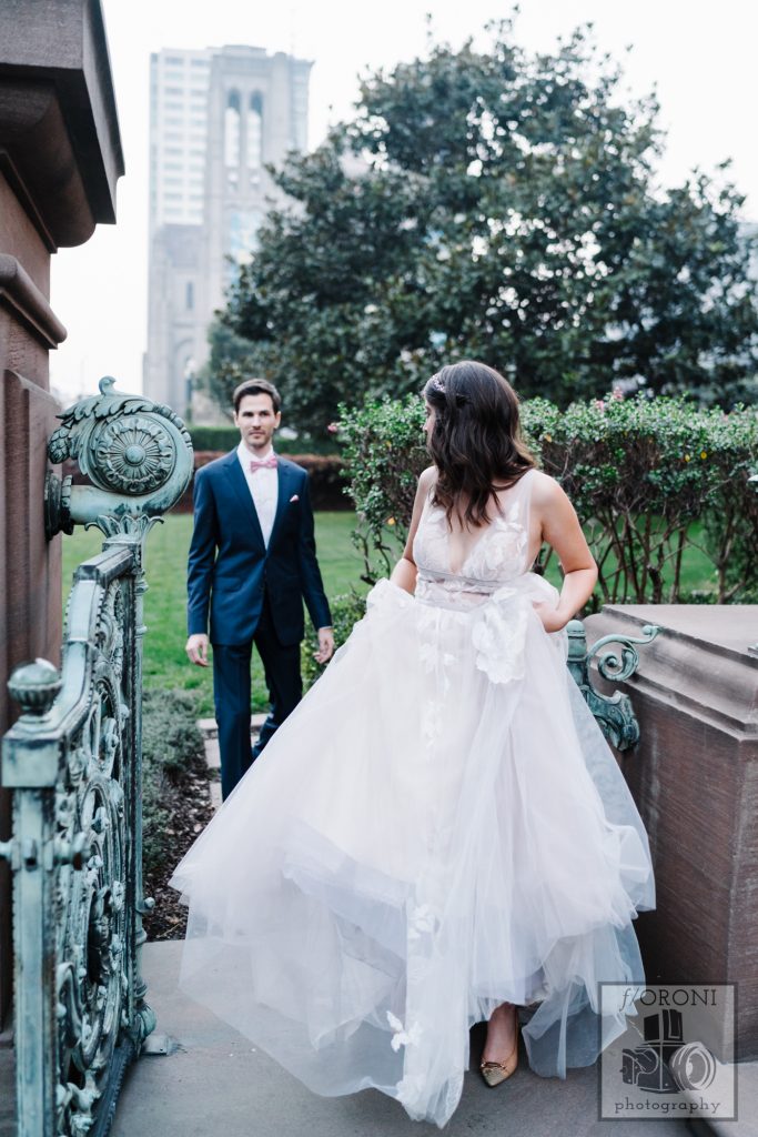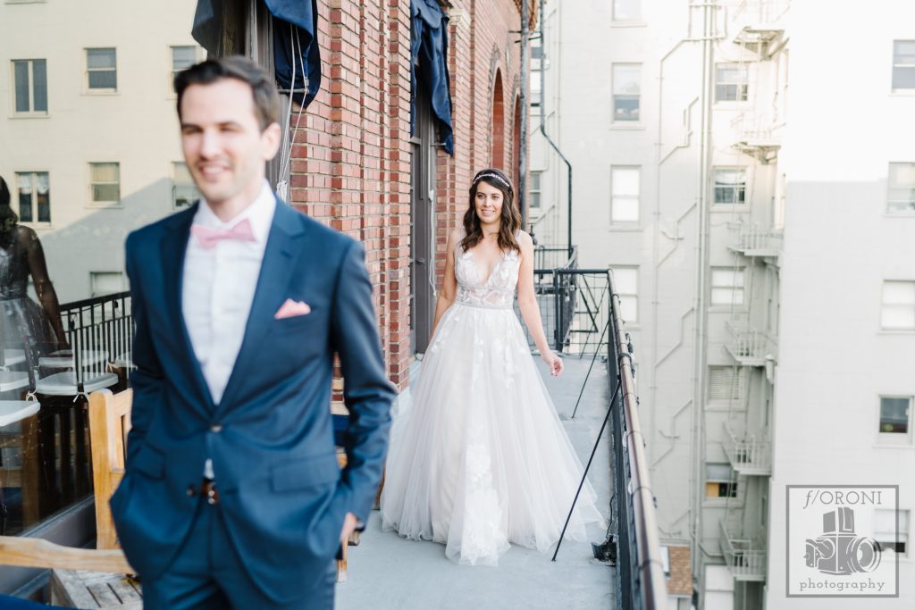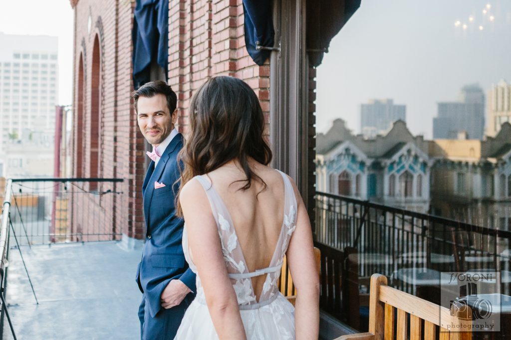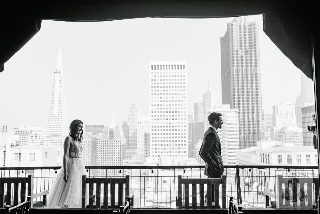 When I first met Lee and Christopher I immediately knew that I wanted to photograph their wedding. They had great chemistry together and it was easy to tell they were very much in love. Nothing translates better in a photograph than when two people genuinely bring joy to one-another. This was certainly the case with these two. I’m so happy they chose me to capture this important day! It was definitely a wonderful wedding at The University Club of San Francisco. Their marriage took place at the iconic University Club of San Francisco which was founded in 1890, located atop Nob Hill. The two decided on doing a first look and I’m so happy they did. My second photographer and I were able to get some absolutely stunning photos of them with the skyline of San Francisco in the background. When Christopher turned to see his bride-to-be you could see the love in his eyes.