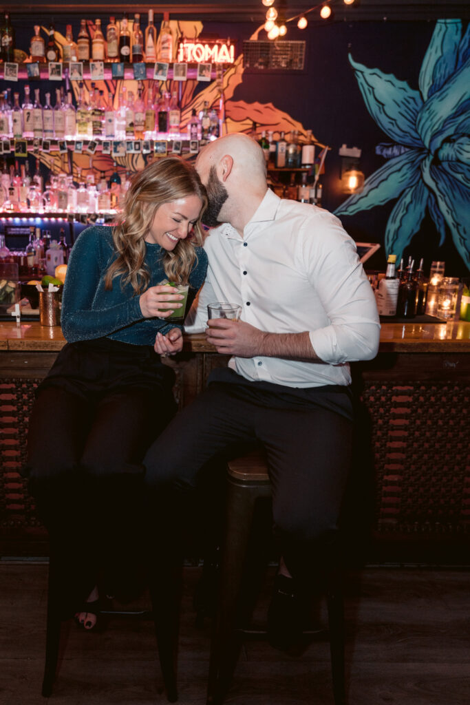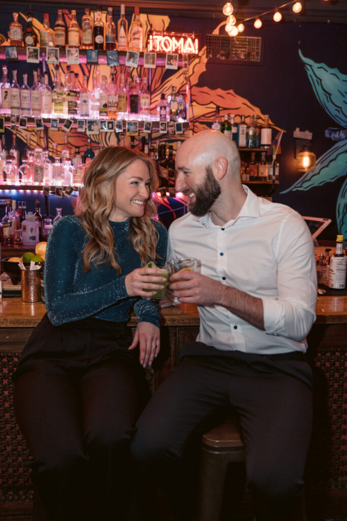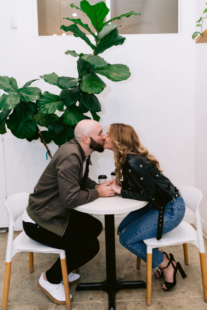 Capturing the essence of love in the vibrant heart of Long Beach, California was an absolute joy during this engagement photo adventure. We kicked off the day at the charming Rose Park Cafe, nestled in downtown Long Beach. Surrounded by the cozy atmosphere, the couple’s laughter and affection unfolded over cups of steaming coffee. Transitioning to Fingerprints Records, nostalgia filled the air as the couple explored a treasure trove of vintage vinyl records, creating timeless moments amidst the backdrop of music history. The celebration continued at Mezcalero LBC, where the couple toasted to their future at the intimate upstairs bar with expertly crafted cocktails. Each venue infused its unique charm into the visual narrative of their love story, making this engagement shoot in Long Beach an authentically memorable and eclectic experience.